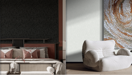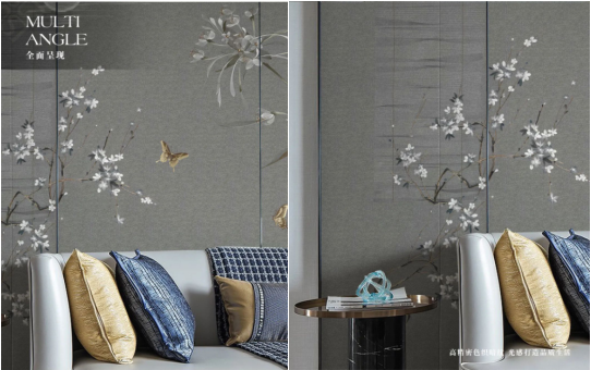 由于高精密墻布的支數(shù)較多所以很柔軟,在與墻面的貼合程度上更勝一籌,不容易出現(xiàn)空鼓現(xiàn)象,因此領繡無縫墻布不僅立體感強,上墻也很平整服帖。