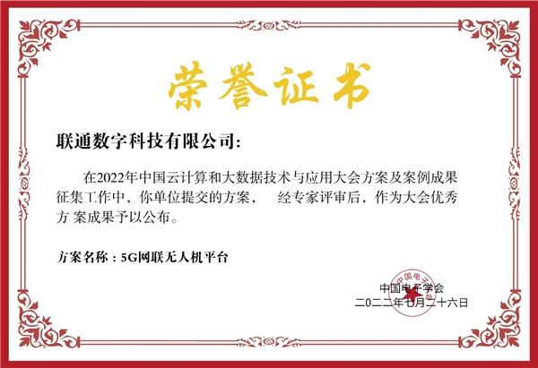 7月26日上午,2022中國云計(jì)算與大數(shù)據(jù)技術(shù)與應(yīng)用大會在北京隆重召開。本次大會由中國電子學(xué)會主辦,旨在分析國內(nèi)外云計(jì)算、大數(shù)據(jù)技術(shù)發(fā)展特點(diǎn)和趨勢,加快經(jīng)濟(jì)社會數(shù)字化發(fā)展,深入推進(jìn)實(shí)施“上云用數(shù)賦智”行動,賦能傳統(tǒng)產(chǎn)業(yè)轉(zhuǎn)型升級。會上,聯(lián)通數(shù)字科技有限公司5G網(wǎng)聯(lián)無人機(jī)平臺、場景云系列產(chǎn)品斬獲兩項(xiàng)優(yōu)秀案例成果獎。