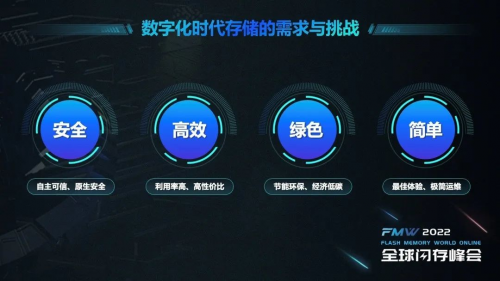 同時(shí),在用戶側(cè),對安全、高效、綠色、簡單的要求成為數(shù)字化時(shí)代對于存儲的需求核心。自主可信、原生安全,利用率高、高性價(jià)比,節(jié)能環(huán)保、經(jīng)濟(jì)低碳,最佳體驗(yàn)、極簡運(yùn)維等具體需求為存儲發(fā)展提出新挑戰(zhàn)。
