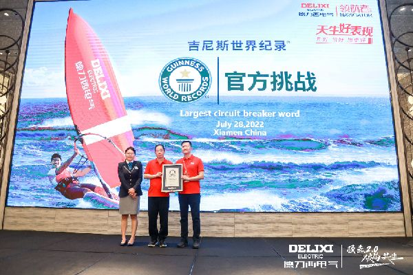 不斷的「破」與「立」,跳出當(dāng)下,方能率先「破局」而出。在本次的會(huì)議中,德力西電氣也創(chuàng)新性地?cái)y手來(lái)自全國(guó)的核心合作伙伴,在重慶、長(zhǎng)沙、廈門三地成功挑戰(zhàn)“最大的斷路器拼成的詞語(yǔ)”紀(jì)錄,并獲得吉尼斯世界紀(jì)錄?官方認(rèn)證。