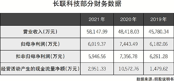 財(cái)務(wù)數(shù)據(jù)顯示,報(bào)告期內(nèi),長聯(lián)科技營業(yè)收入保持穩(wěn)定增長,各期分別為45780.34萬元、48418.03萬元和58147.99萬元。據(jù)長聯(lián)科技披露,公司于2015年在新三板公開轉(zhuǎn)讓并于2017年申請摘牌,2015年與2016年?duì)I業(yè)收入分別為21321.19萬元、25828.06萬元。相比新三板時(shí)期,公司報(bào)告期內(nèi)營收規(guī)模有所擴(kuò)大。