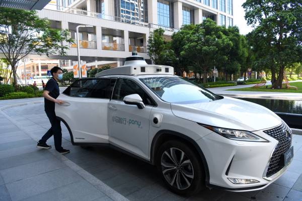 8月1日,在深圳前海,一名乘客體驗(yàn)乘坐小馬智行自動(dòng)駕駛汽車(chē)。新華社記者 梁旭 攝
