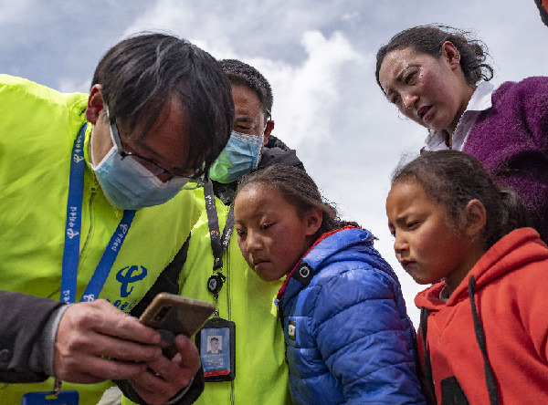 中國電信集團(tuán)拉薩分公司當(dāng)雄電信局的技術(shù)人員在烏瑪塘鄉(xiāng)巴嘎村幫助村民調(diào)試無線網(wǎng)絡(luò)。資料照片