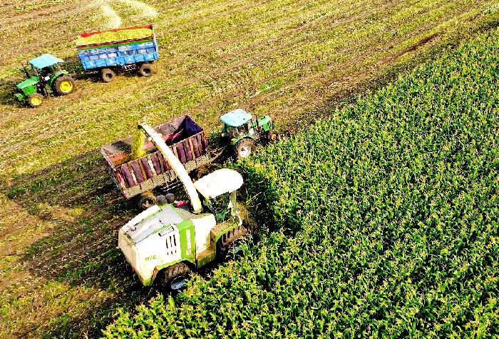 北大荒集團(tuán)北安分公司青貯玉米收獲現(xiàn)場(chǎng)。