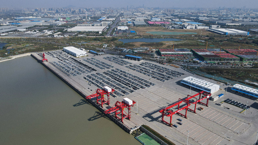 這是10月11日拍攝的安徽合肥派河國際綜合物流園港區(qū)碼頭(無人機照片)。