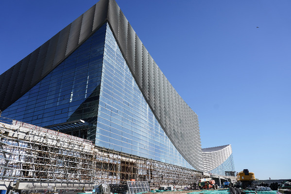 這是北京城市副中心圖書館項目施工現(xiàn)場(2022年11月4日攝)。
