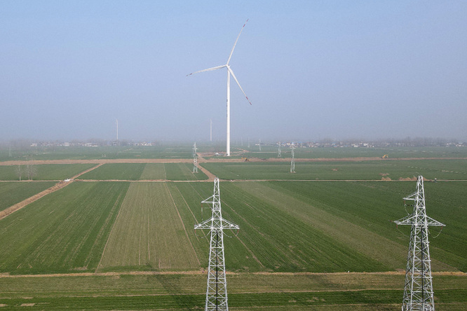 某地風(fēng)儲電站,與傳統(tǒng)的風(fēng)力發(fā)電站相比,這處電站配備了10兆瓦時的儲能設(shè)施,可以在發(fā)電高峰時將電能暫時儲存,在用電高峰時釋放。資料照片