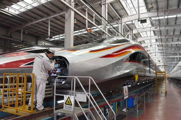 2023年1月4日,一名技術(shù)人員在查看“復(fù)興號(hào)”智能動(dòng)車組。