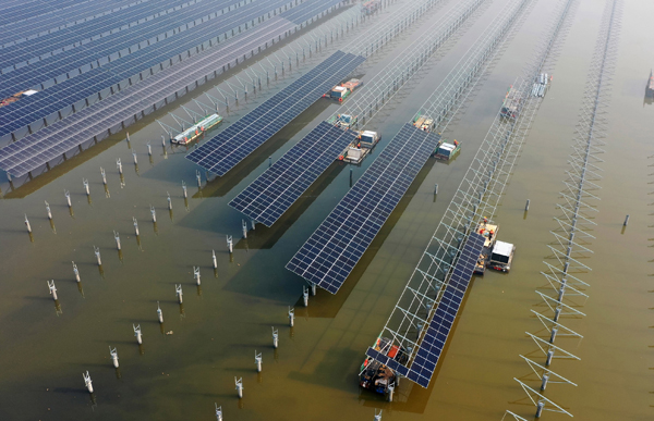 2023年1月5日拍攝的華電海晶光伏項(xiàng)目B標(biāo)段現(xiàn)場(chǎng)(無人機(jī)照片)。