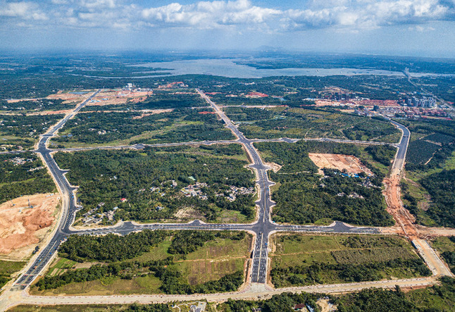 2022年12月26日拍攝的建設(shè)中的文昌國(guó)際航天城起步區(qū)“三橫五縱”路網(wǎng)工程項(xiàng)目(無(wú)人機(jī)照片)。新華社記者 蒲曉旭 攝