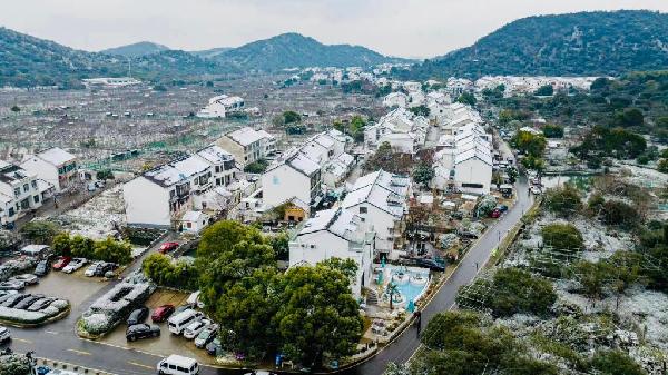 樹山村媳婦曹莉莉過(guò)去從事跨境電商工作,2020年她與丈夫重新裝修自家老房、經(jīng)營(yíng)民宿。“覽山·悅境”位于山腳下,昔日破舊的農(nóng)房如今變身花園別墅,幾位住客坐在窗邊,曬太陽(yáng)、品茶、欣賞山景。
