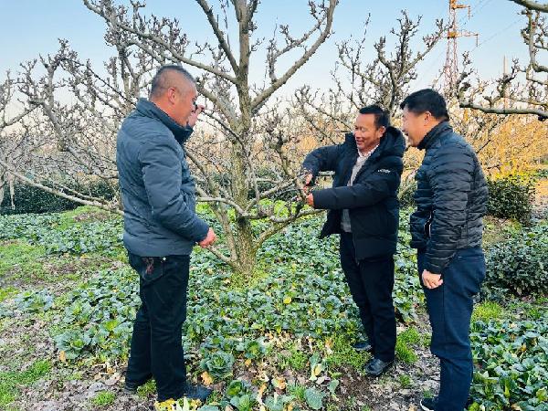 圖為吳雪春(右二)指導(dǎo)村民修剪梨樹。(受訪者供圖)