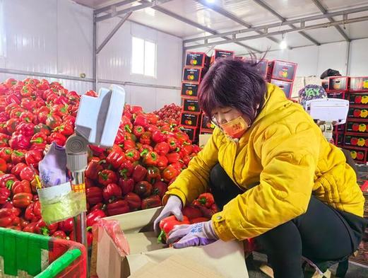 圖為山東壽光東斟灌村村民在裝箱打包彩椒。記者 陳國(guó)峰 攝
