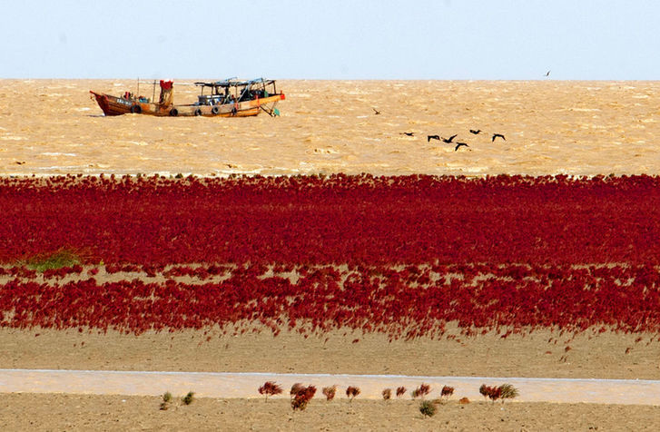 翅堿蓬給黃河口濱海灘涂濕地鋪上“紅地毯”。記者 范長國 攝