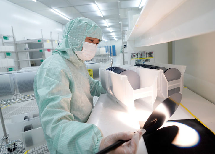 山東德州一家半導(dǎo)體材料企業(yè),員工在目檢硅片。記者 范長國 攝