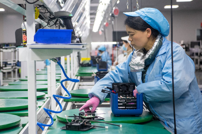 2月13日,在位于重慶市璧山區(qū)的重慶大江動力設(shè)備制造有限公司,工作人員在數(shù)字化工廠內(nèi)作業(yè)。該企業(yè)是工信部第二批專精特新“小巨人”企業(yè)。近年來該企業(yè)在打造數(shù)字化工廠的同時積極投入研發(fā)新能源產(chǎn)品,在生產(chǎn)和研發(fā)兩個領(lǐng)域共同推進(jìn)企業(yè)轉(zhuǎn)型升級。