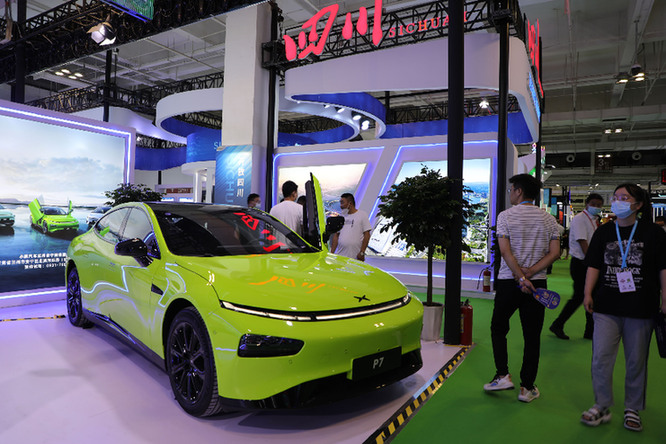 圖為在第28屆“蘭洽會”上拍攝的小鵬新能源汽車。 新華社記者 張智敏 攝