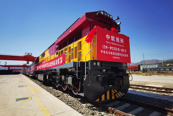 在甘肅(蘭州)國際陸港準備發(fā)車的“中吉烏”公鐵聯(lián)運國際貨運班列。 新華社記者 范培珅 攝