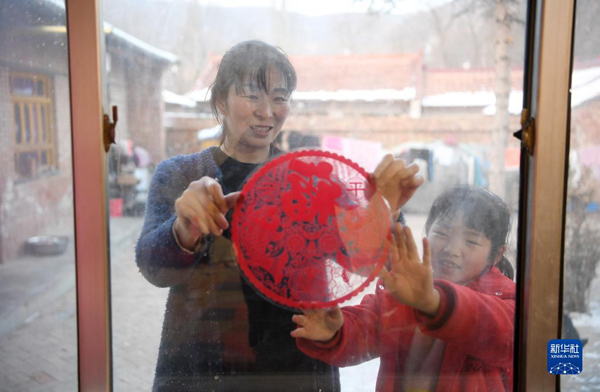 在位于大山深處的寧夏固原市隆德縣鳳嶺鄉(xiāng)于河村,村民馬鳳艷和女兒一起貼窗花(2022年1月28日攝)。近年來(lái),在鄉(xiāng)村振興等戰(zhàn)略助力下,于河村村容村貌發(fā)生巨大變化。新華社記者 王鵬 攝