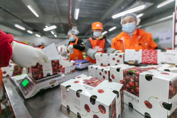 工作人員在綜合加工包裝中心包裝來自智利的車?yán)遄印P氯A社記者 王翔 攝