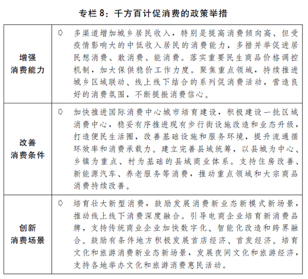 (計劃報告中的專欄8:千方百計促消費的政策舉措)
