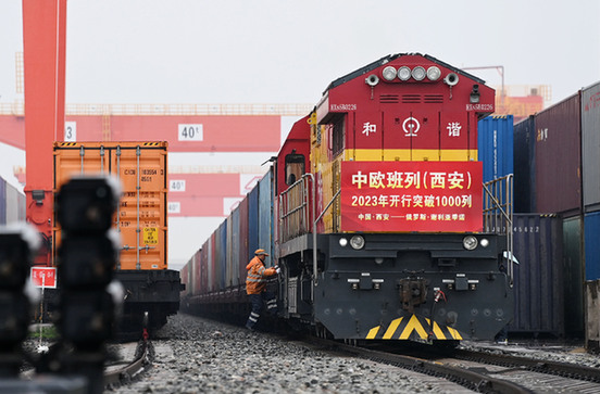 3月23日,在西安國(guó)際港站,X8489次中歐班列準(zhǔn)備駛往俄羅斯謝利亞季諾。23日上午,滿載50車外貿(mào)出口汽車的X8489次中歐班列從西安國(guó)際港站駛出,開往俄羅斯謝利亞季諾。今年以來,陜西中歐班列開行量已突破1000列,為加快中歐班列(西安)集結(jié)中心建設(shè),助力“一帶一路”沿線國(guó)家貿(mào)易互通提供了充足的運(yùn)能保障。 新華社記者 李一博 攝