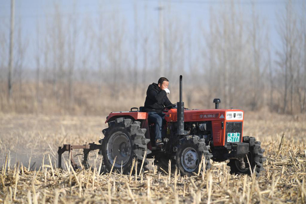 3月28日,在吉林省鎮(zhèn)賚縣,農(nóng)民駕駛農(nóng)機整地。新華社記者 張楠 攝