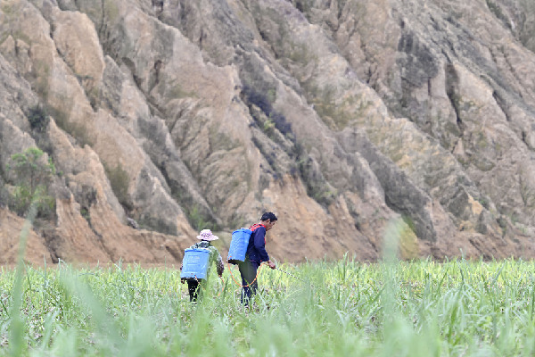 在柳州市柳江區(qū)穿山鎮(zhèn)思榮村,農民在蔗田里忙碌。