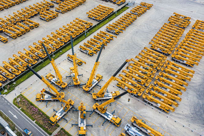 江蘇徐工集團(tuán)重型機(jī)械有限公司產(chǎn)品調(diào)試場(chǎng)(無(wú)人機(jī)照片)。新華社發(fā)