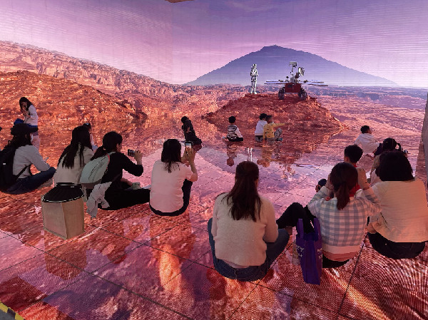 2023年“中國航天日”系列展覽上,參展者通過體驗(yàn)沉浸式航天元宇宙感受“登陸”火星。