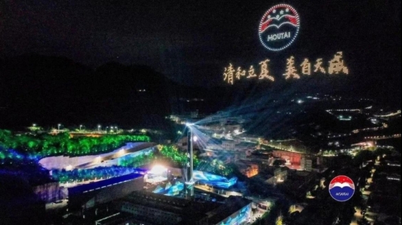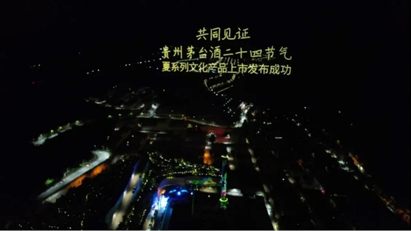 多架無(wú)人機(jī)以夜空為幕,在美輪美奐的燈光色彩配合下,小巽、茅臺(tái)酒瓶等造型和“共同見(jiàn)證貴州茅臺(tái)酒二十四節(jié)氣夏系列文化產(chǎn)品上市發(fā)布成功”等字樣依次呈現(xiàn),為與會(huì)人員獻(xiàn)上了一場(chǎng)精彩的視覺(jué)盛宴,更展示了茅臺(tái)品牌和文化的極致魅力。