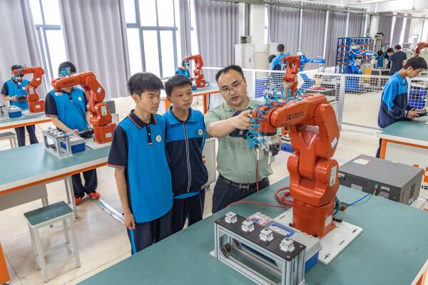 5月17日,在重慶永川職教中心,老師在實訓(xùn)室指導(dǎo)學(xué)生。