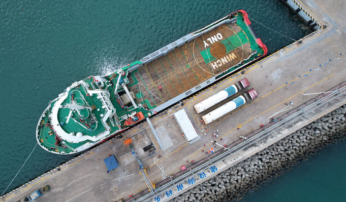 由中國海油氣電集團建設運營的我國首座沿海液化天然氣(LNG)船舶加注站。新華社記者 楊冠宇 攝