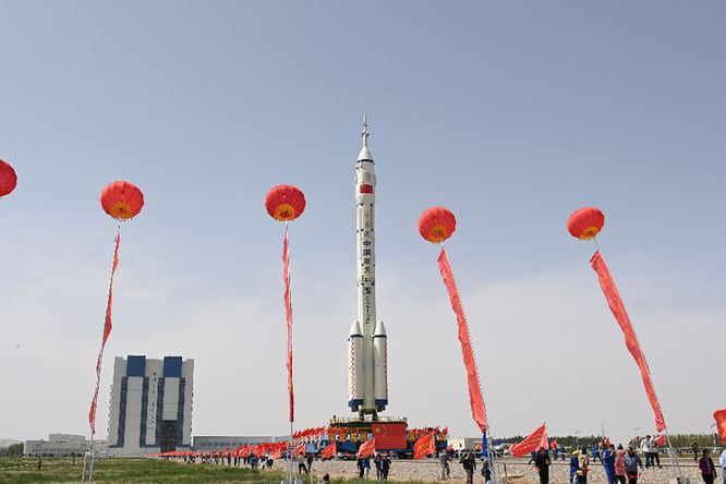 5月22日,神舟十六號(hào)載人飛船與長征二號(hào)F遙十六運(yùn)載火箭組合體在轉(zhuǎn)運(yùn)途中。