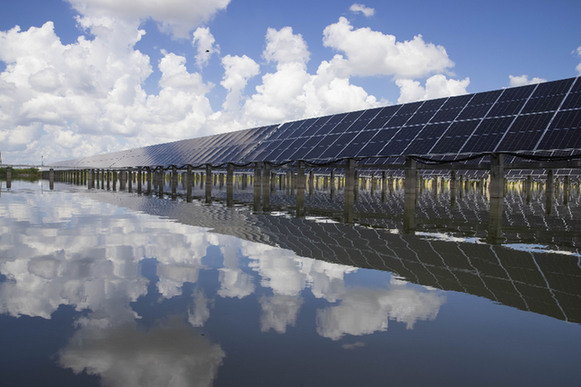 大慶油田星火水面光伏示范工程現(xiàn)場。新華社記者 張濤 攝