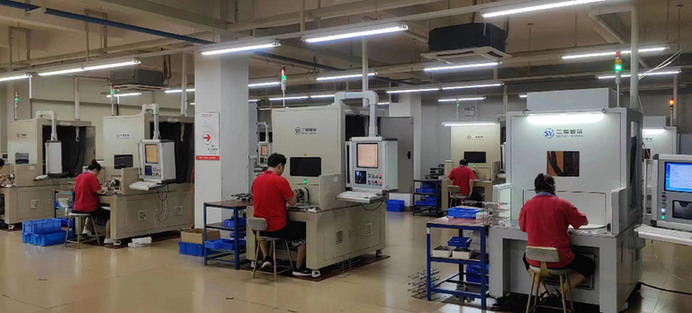 在全國(guó)五大眼鏡生產(chǎn)基地之一的江西鷹潭市余江區(qū),記者走進(jìn)鷹潭萬(wàn)成光學(xué)科技有限公司的生產(chǎn)車間,只見(jiàn)生產(chǎn)線繁忙運(yùn)轉(zhuǎn),工人操作著激光焊接設(shè)備,各個(gè)點(diǎn)位快速焊接,僅需30秒一副眼鏡便能下線。