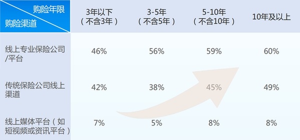 不同購(gòu)險(xiǎn)年限線上購(gòu)險(xiǎn)渠道分布(多選) 數(shù)據(jù)來(lái)源:《2022年中國(guó)互聯(lián)網(wǎng)保險(xiǎn)消費(fèi)者洞察報(bào)告》 潘悅 制圖