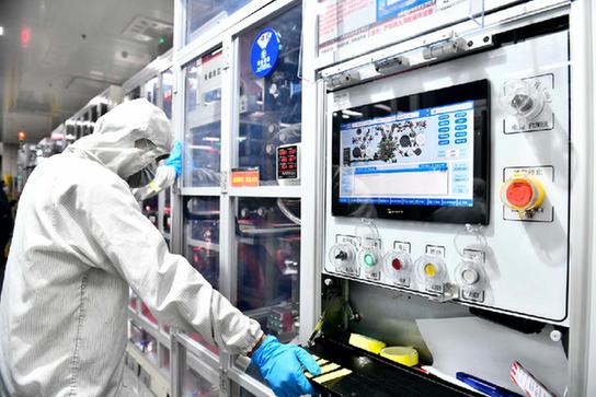 6月6日,在山東吉利欣旺達(dá)動力電池有限公司,工作人員在鋰電池生產(chǎn)線值守。 新華社記者 郭緒雷 攝