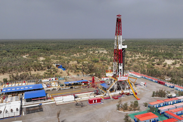 位于新疆塔里木盆地塔克拉瑪干沙漠的中國(guó)石化“深地工程”——順北油氣田平均埋藏深度超過(guò)7300米,是世界陸上最深的商業(yè)開(kāi)發(fā)油氣田之一。順北油氣田目前已鉆成垂直深度超過(guò)8000米的井50口,實(shí)現(xiàn)了26口“千噸井”(單井日產(chǎn)1000噸的油氣井)的重大突破。圖為8月21日拍攝的中國(guó)石化塔里木盆地“深地工程”躍進(jìn)3-3XC油氣井。該井設(shè)計(jì)井深9472米,截至8月28日,鉆探深度已達(dá)8471米(無(wú)人機(jī)照片)。