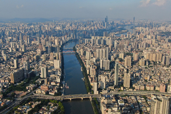 廣州市區(qū)珠江兩岸風(fēng)光(無(wú)人機(jī)照片)。