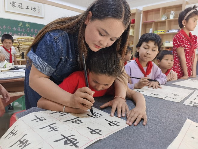 唐錦書院院長紀文彬介紹,利用寒暑假及周末唐錦書院針對職工孩子免費開展一系列傳播中華優(yōu)秀傳統(tǒng)文化的活動,如書法、手工剪紙等,為“文化潤疆”、鑄牢中華民族共同體意識貢獻自己的力量。