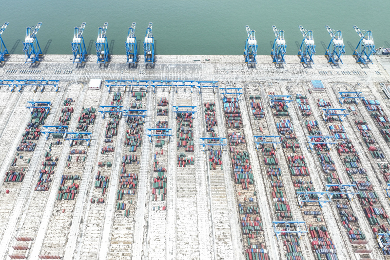 北部灣港欽州自動(dòng)化集裝箱碼頭(無(wú)人機(jī)照片)。記者 曹祎銘 攝