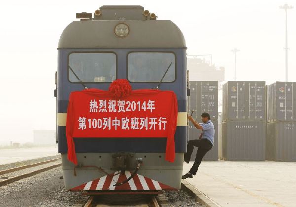 2014年8月1日,2014年第100列中歐班列在鄭州圃田集裝箱中心站準(zhǔn)備出發(fā),前往德國漢堡。 新華社記者 邢廣利 攝