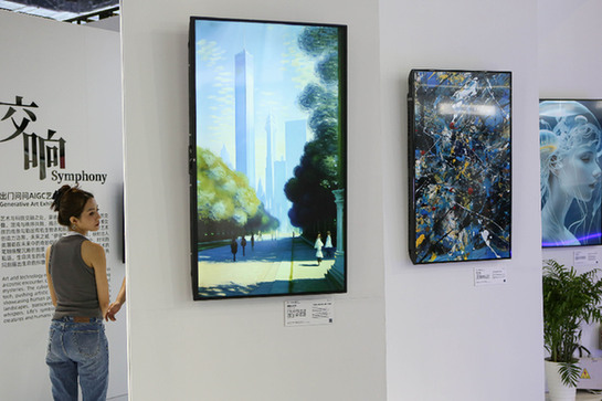人工智能的發(fā)展,與知識產(chǎn)權(quán)發(fā)生著緊密的關(guān)系。圖為今年上海舉行的世界人工智能大會中主題為“交響”的AIGC藝術(shù)展。資料照片