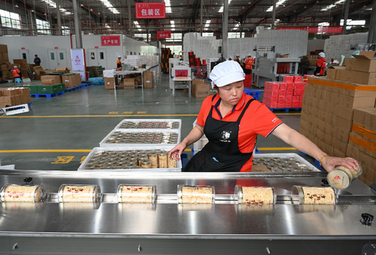 福建省寧德市加快農(nóng)村電商創(chuàng)業(yè)園和電商直播基地建設(shè)。圖為員工在辰頤嚴(yán)選產(chǎn)業(yè)園的電商農(nóng)產(chǎn)品深精加工車間檢查農(nóng)產(chǎn)品包裝。新華社記者 林善傳 攝