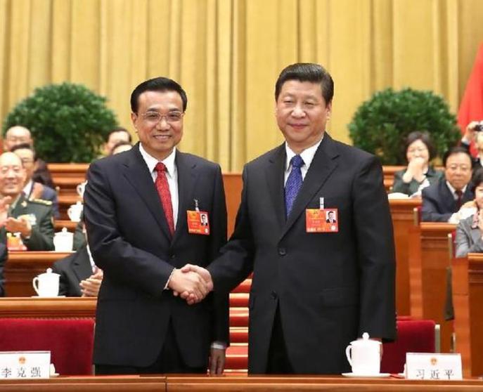 2013年3月15日,第十二屆全國人民代表大會第一次會議在北京人民大會堂舉行第五次全體會議。會議經(jīng)過投票表決,決定李克強為中華人民共和國國務(wù)院總理。這是習近平同志和李克強同志親切握手。