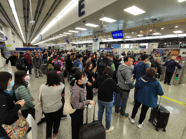 2023年12月29日在深圳福田口岸拍攝的準備通關(guān)的旅客。 新華社記者 王豐 攝