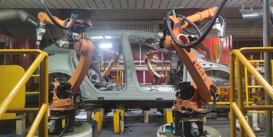 “全長三角造”機器人應用在吉利臨海基地白車身焊裝產(chǎn)線。 劉俊 攝