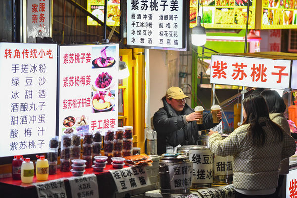 位于長沙市天心區(qū)裕南街街道的東瓜山夜市是長沙美食地標(biāo)之一,也是當(dāng)?shù)叵M經(jīng)濟(jì)和個體工商戶發(fā)展的“風(fēng)向標(biāo)”。一兩百米長的街巷里,有30多家經(jīng)營奶茶、燒烤、肉腸、紫蘇桃子姜等美食的小店。