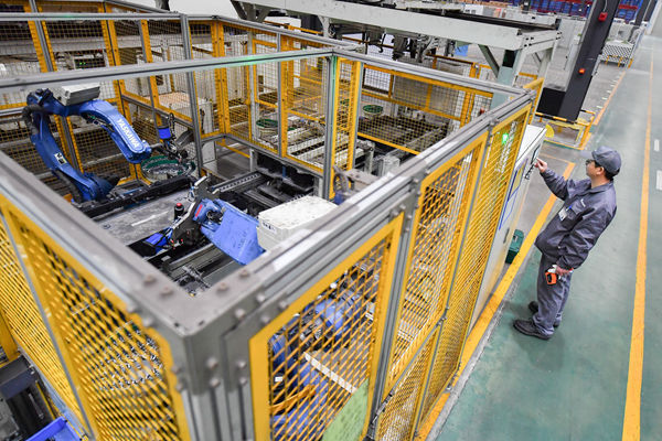 長沙市銀寶山新汽車零部件有限公司的工人在操作自動化設(shè)備。記者 陳澤國 攝
